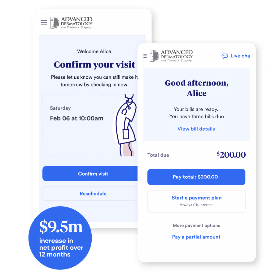 In just 12 months, Advanced Dermatology and Cosmetic Surgery added $9.5 million in net profit, representing a 73.5% relative increase in their collection rate. Moreover, their no-show rate dropped by 26% and front-desk staff are spending less time on manual, repetitive tasks.