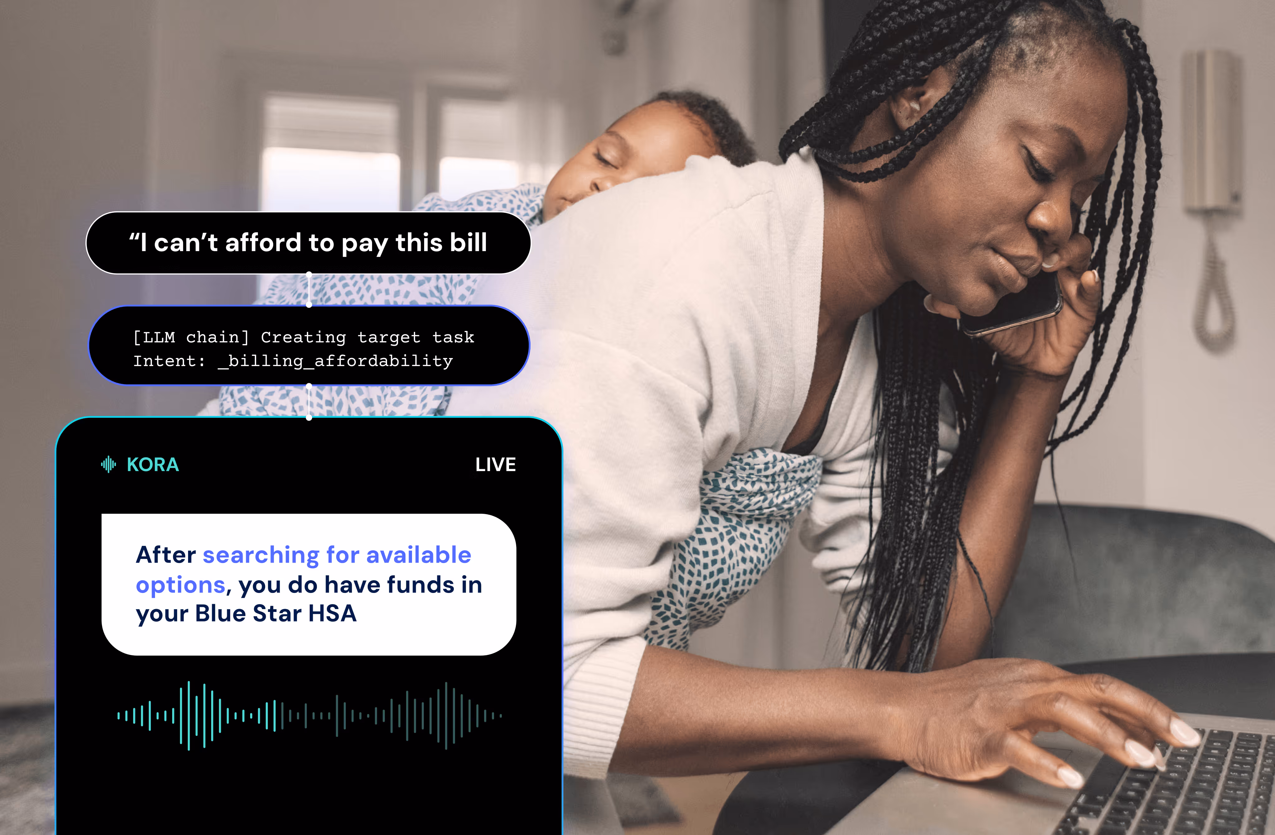 Kora autonomously resolves routine billing inquiries and reduces call handle time, helping call center agents focus on higher-value interactions and more complex patient billing inquiries.